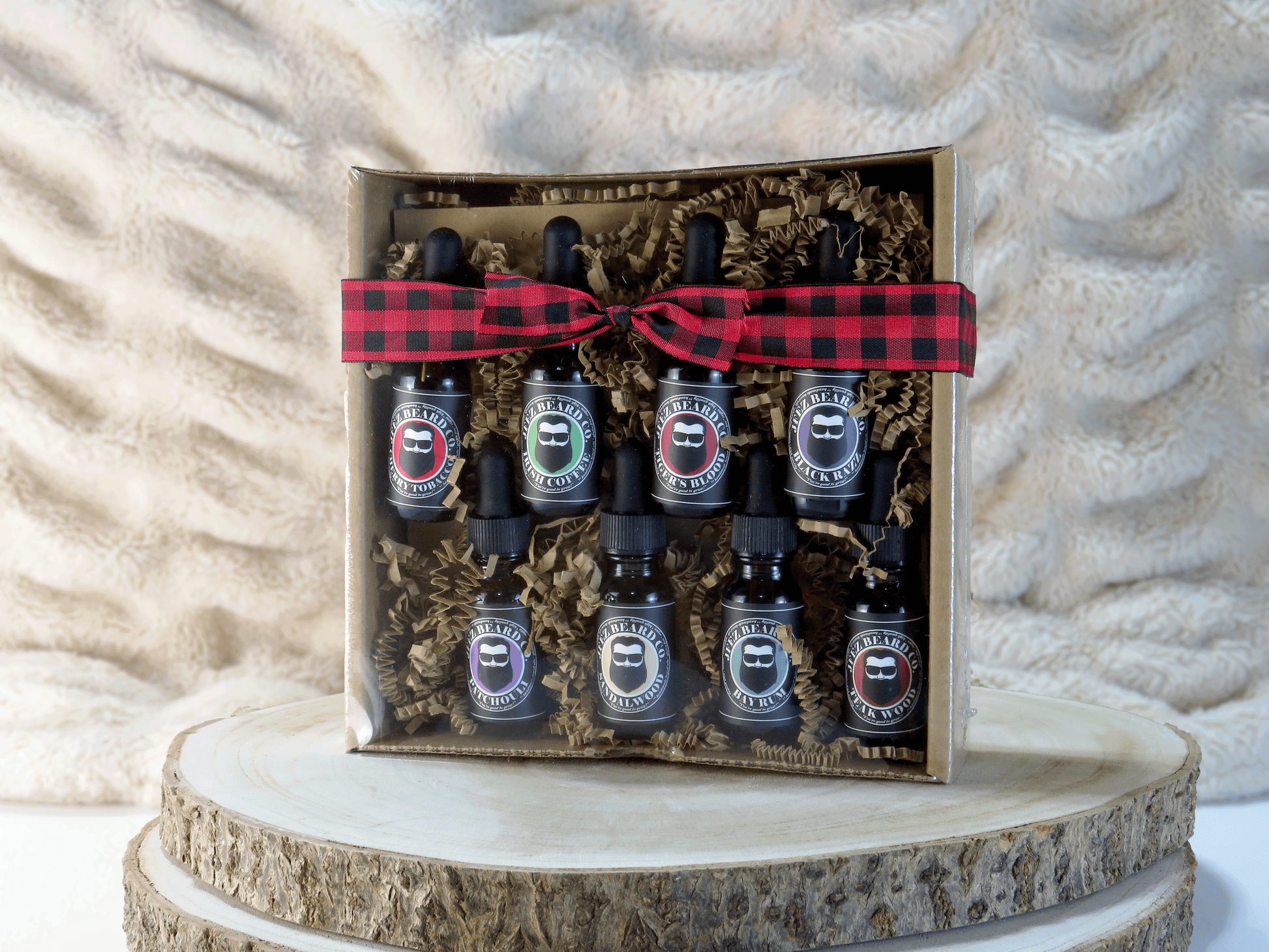 We created the beard oil box set for you containing eight different aromas. This has been requested by our wonderful customers who have given us so much support. This box set contains Black Razz, Sandalwood, Tigers Blood, Irish Coffee, Patchouli, Cherry Tobacco, Teakwood, and Bay Rum. All eight feel incredible on your skin and give you the perfect smell and shine.